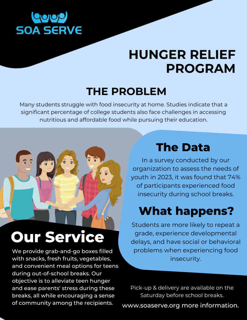 (January 1, 2024): Our Annual Teen Hunger Needs Survey is now live! Please take a moment to share with anyone ages 15-25 to help us determine the road ahead to addressing food insecurity amongst our youth. (Link ended)